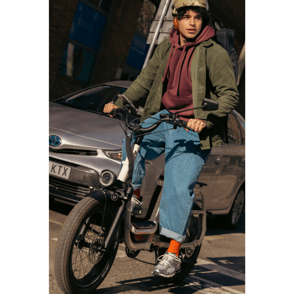 Astucieux et compact, il se replie facilement pour éviter les chocs en circulation et optimiser le rangement de votre vélo électrique.