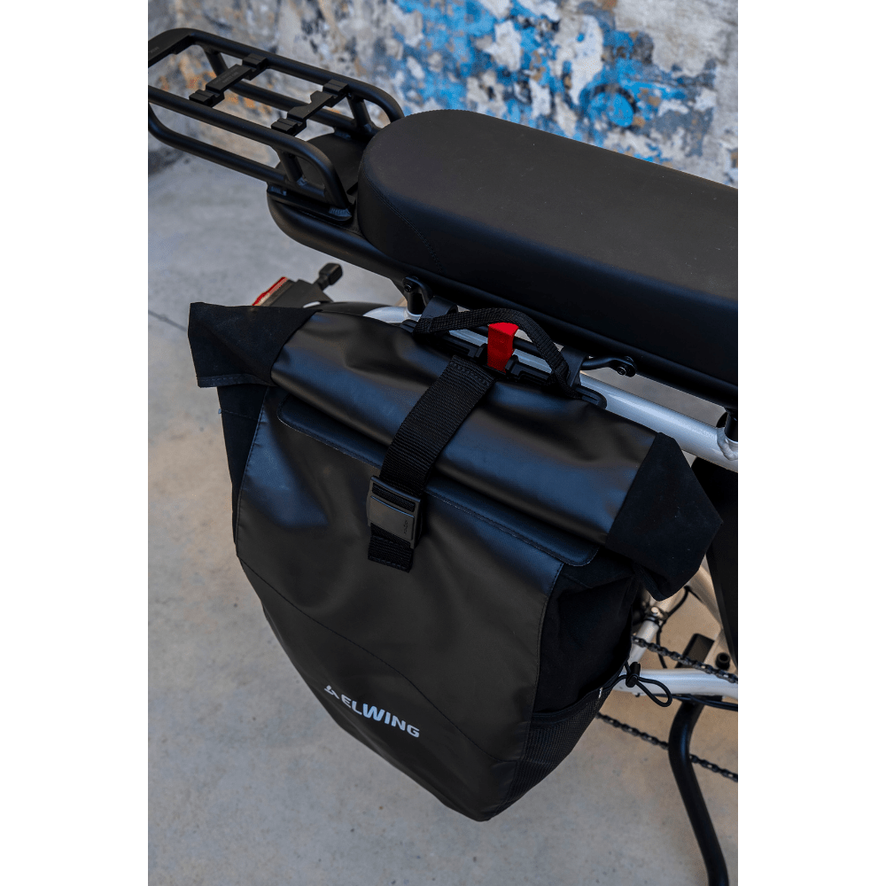 Découvrez la sacoche sac à dos Elwing, un modèle universel hybride idéal pour trajet du quotidien en vélo électrique. Ce sac à dos portable offre de la place pour tous vos objets essentiels et peut être porté confortablement sur le dos lors de vos déplacements à vélo. Doté d'une fermeture magnétique FIDLOCK®, ce sac à dos n'est pas seulement pratique, il est aussi respectueux de l'environnement puisqu'il est fabriqué à partir de matériaux recyclés, notamment du PVC et de l'acrylique enduit provenant de housses de pluie pour vélos cargo.